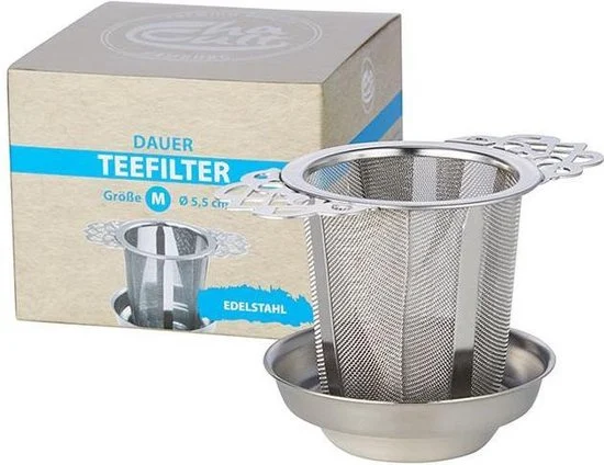 Luxe theefilter van RVS in het zilver met passend theetipje. Deze filter met theetip is door de vleugeltjes geschikt voor elk soort theeglas, ook de grotere mokken. Deze theefilter is speciaal gemaakt voor alle soorten losse thee, ook voor de kruidenthee die een beetje poeder achterlaat. Ook in de horeca is dit een veel gebruikte theezeef, mede omdat de theezeef mooi blijft en makkelijk is te reinigen.
